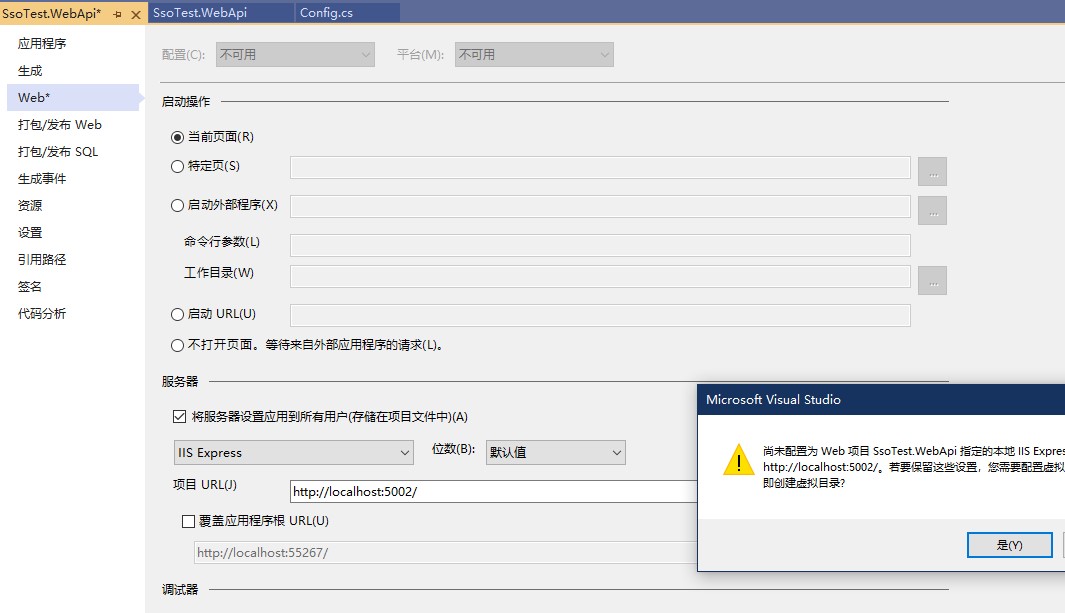- 在解决方案上右键->添加->新建项目,创建WebApi项目,名为SSOTest.WebApi